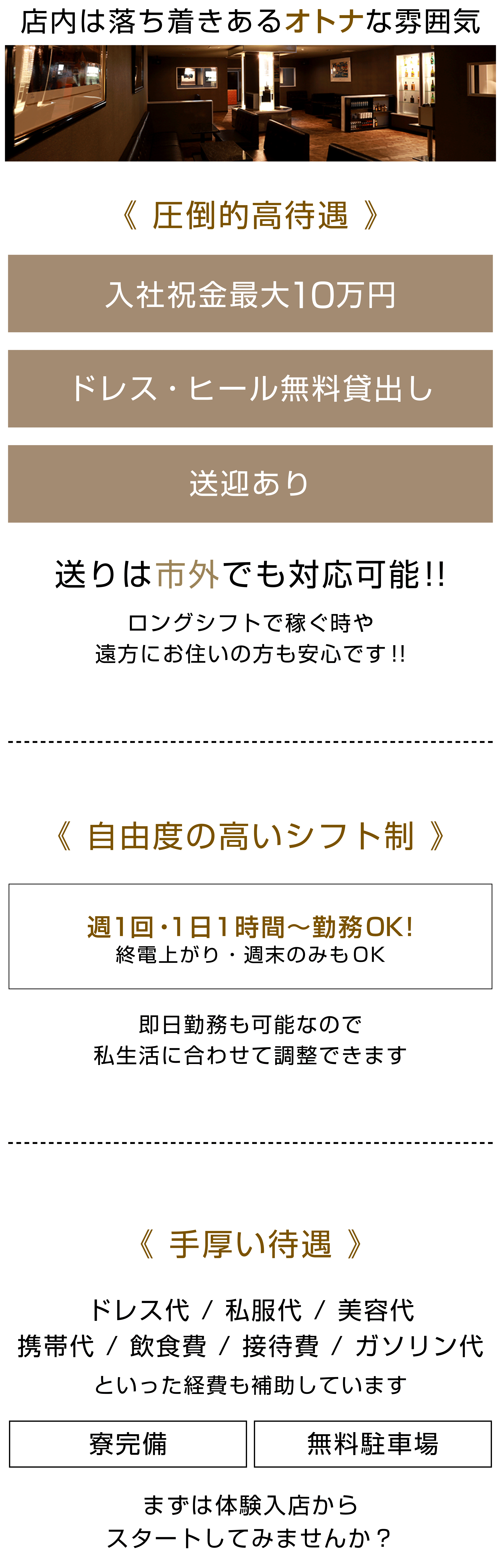 ノルマやペナルティ、同伴やアフターの強制はありません!Unitedloungeはキャストさんが安心して働ける環境を心掛けております。